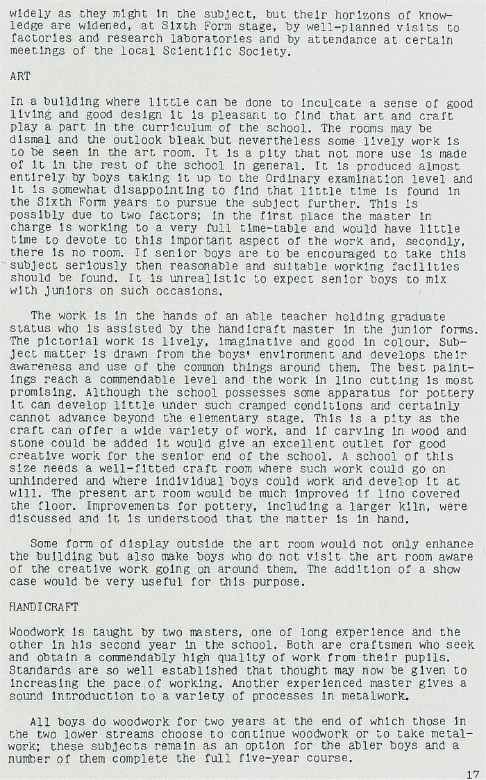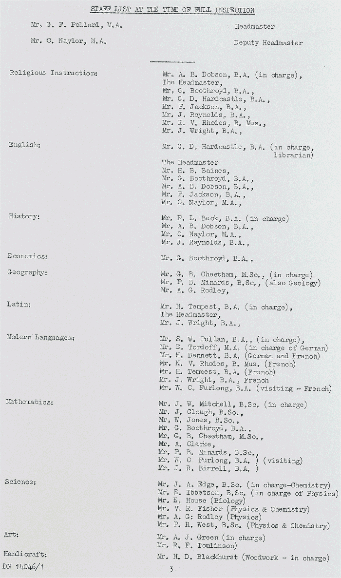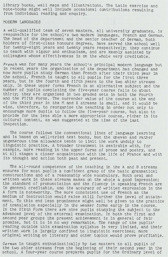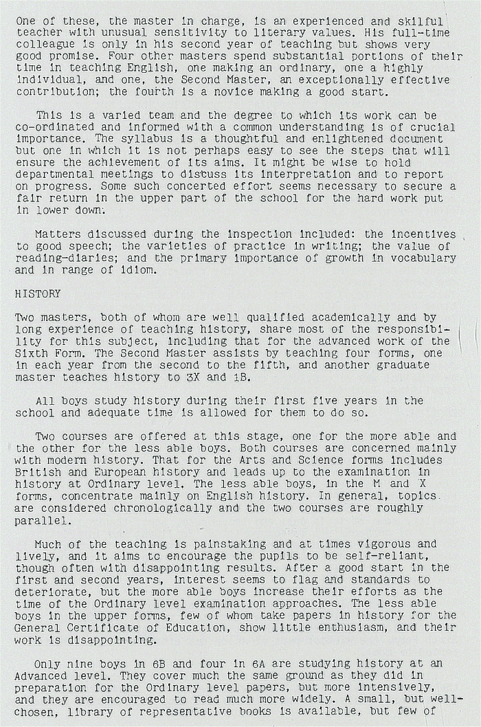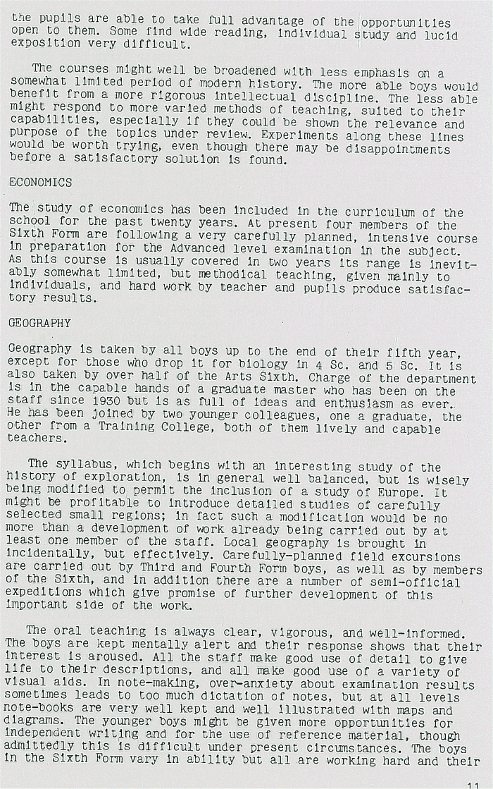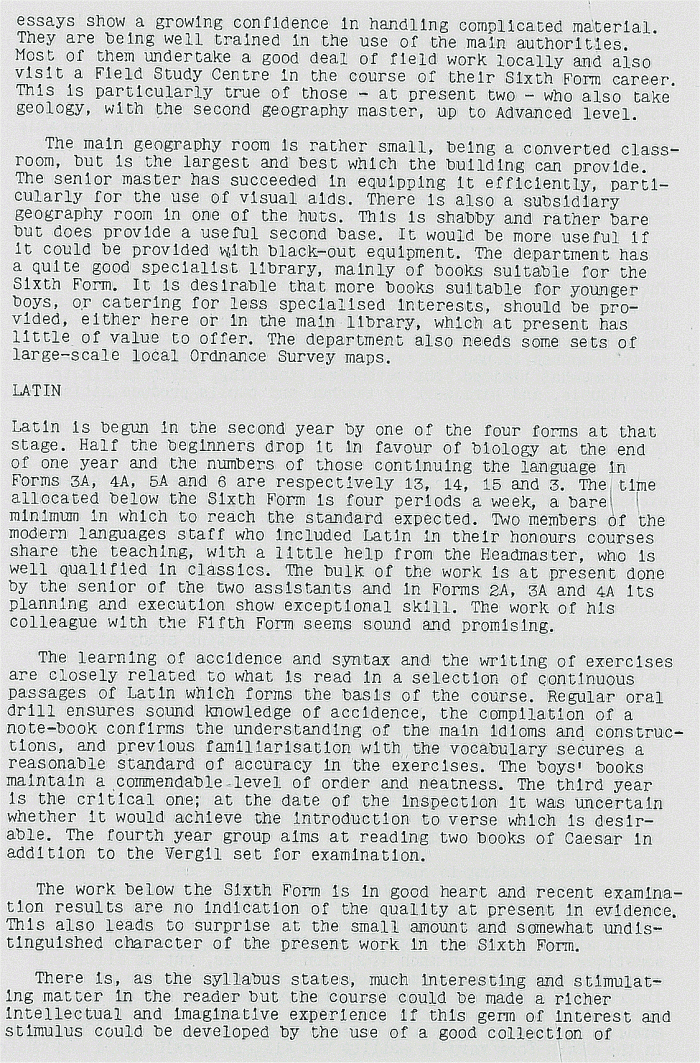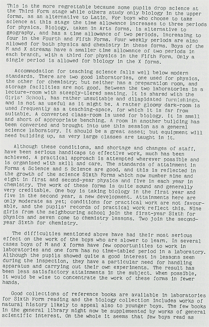 A report by HM Inspector of Schools following an inspection of Grange Boys' Grammar School in November 1958 (kindly supplied by Alan Duckworth)