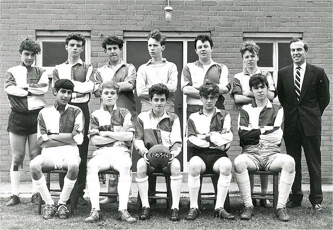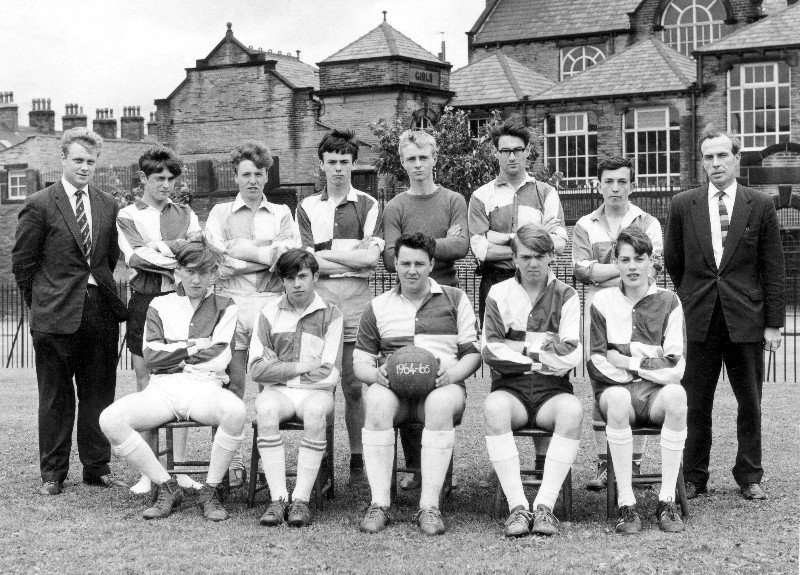 A senior soccer team of 1964-65, provided by Miles Ramsden, who taught at Grange from September 1963 to December 1967, and assisted Alan Clarke.
