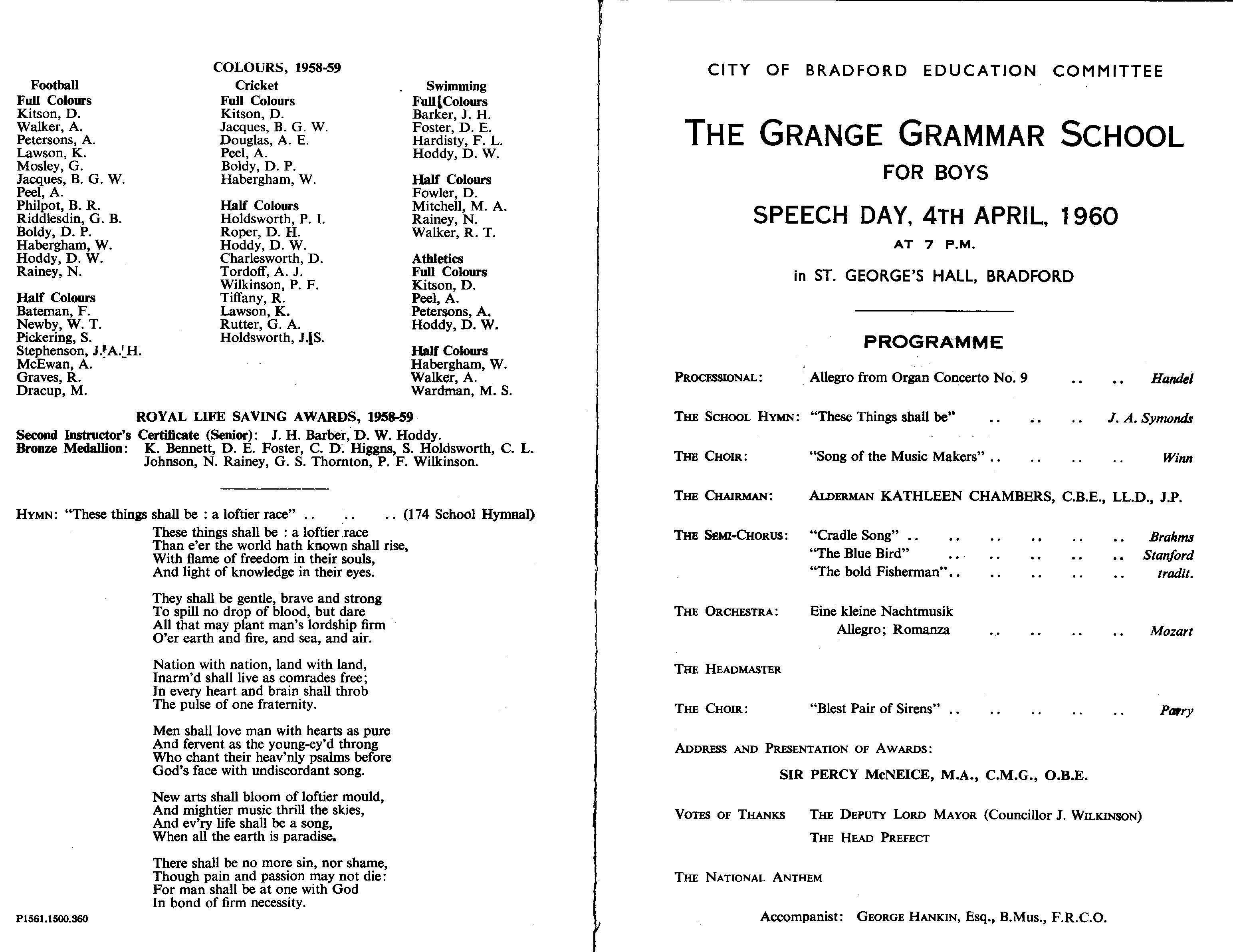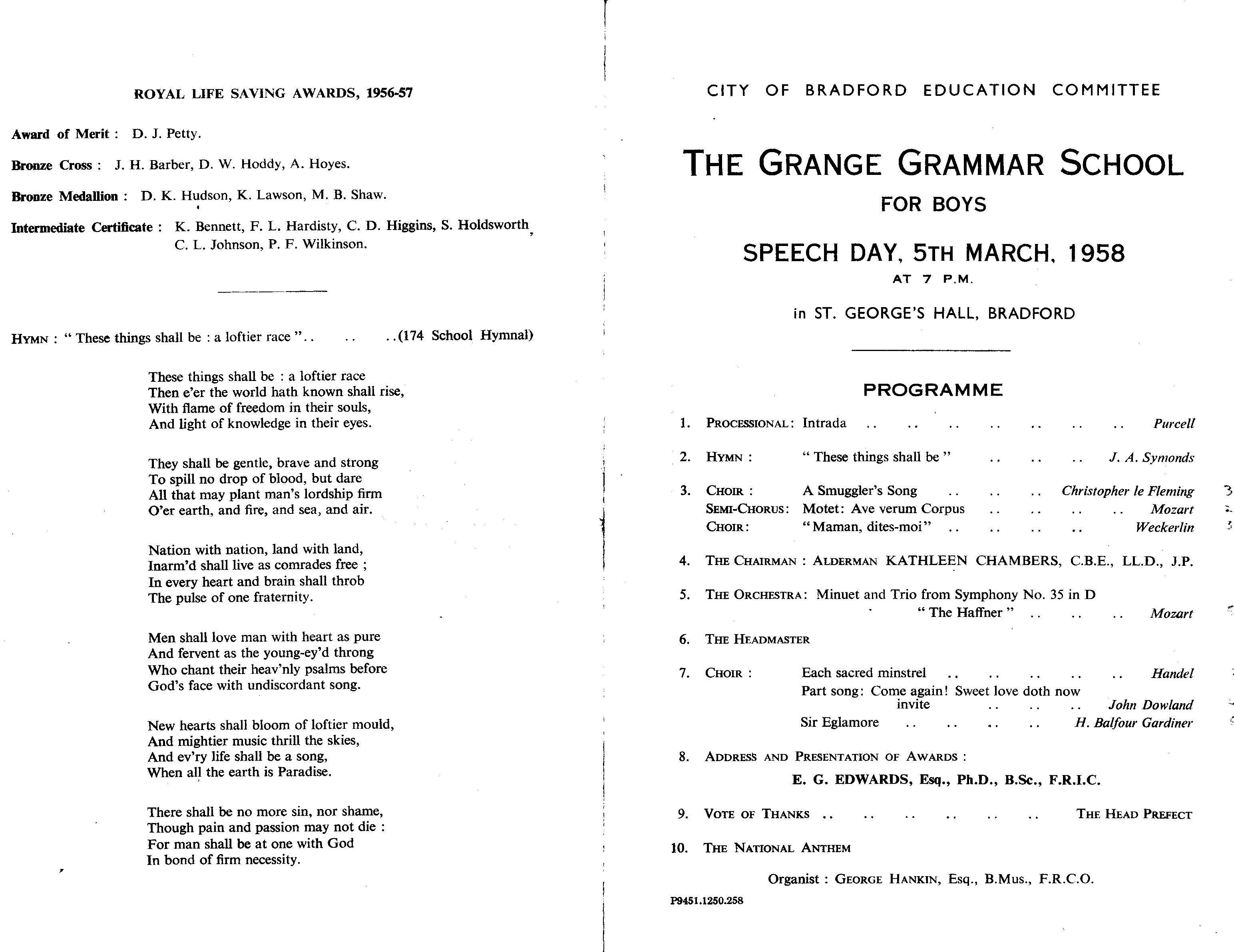 I am indebted to Richard Darke for the copy of the school Speech Day programme of 1965: